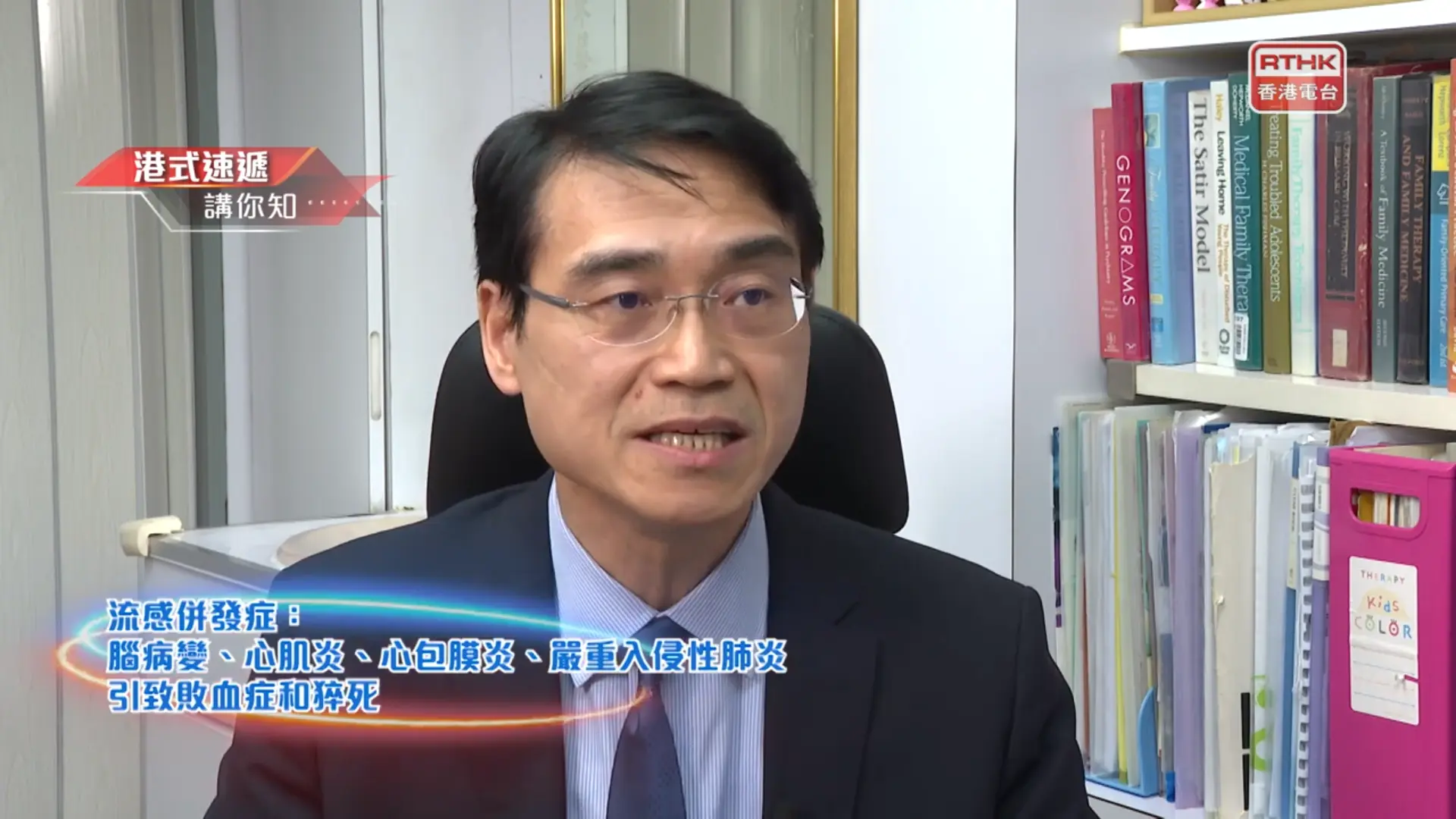 根據家庭醫生林永和醫生解釋,流感病毒可能引致多種嚴重併發症,包括腦病變、心肌炎、心包膜炎,以及由入侵性肺炎引發的敗血症,這些併發症均可能導致猝死。特別是患有慢性疾病或免疫系統失調的兒童,感染流感後病情可能在短時間內急速惡化,甚至危及生命,因此及時識別流感症狀並採取適當措施至關重要。