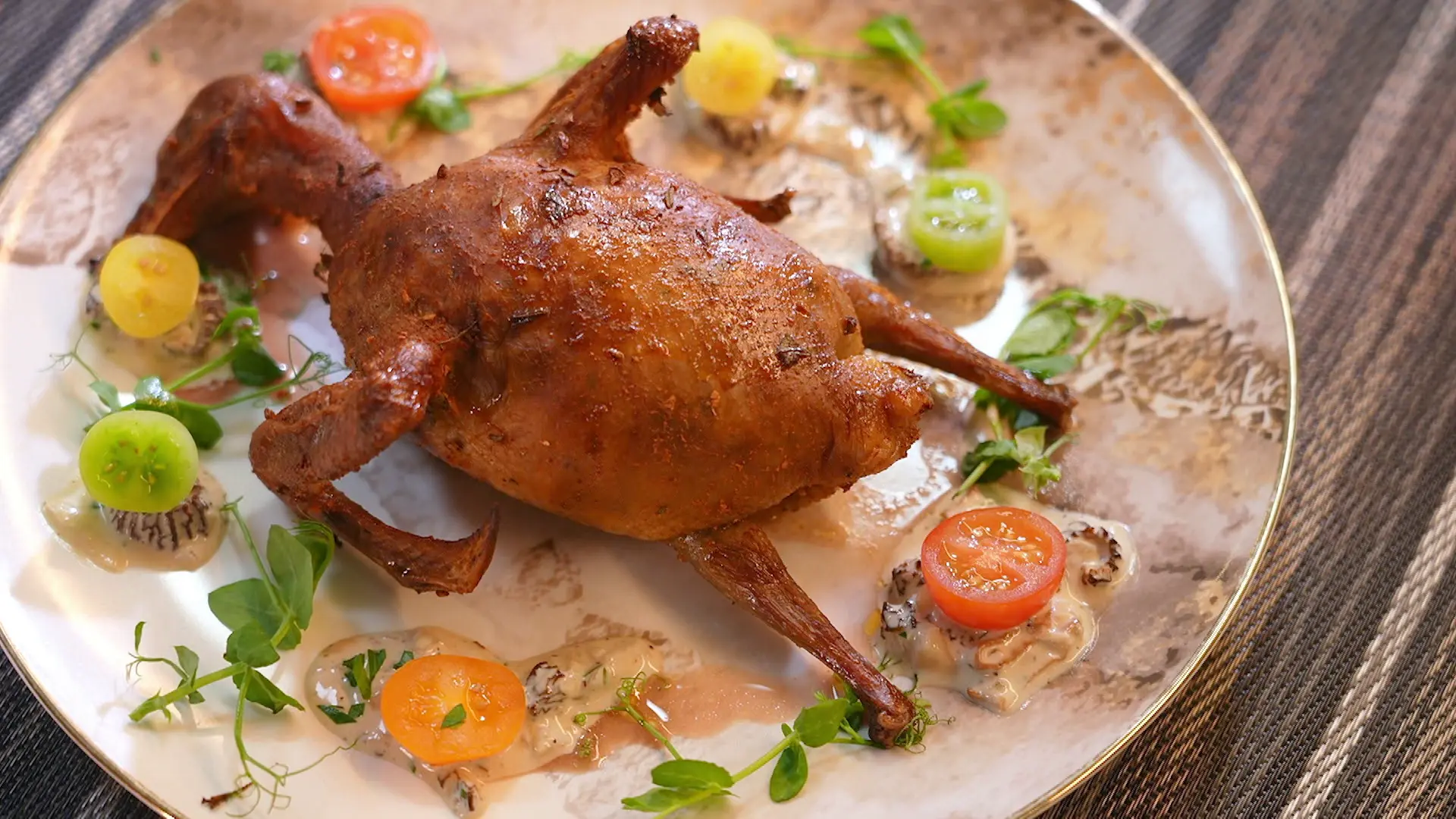 這道精緻的宴客菜,將香氣獨特的羊肚菌、營養的菠菜與意大利燉飯完美結合,一同釀入去骨的乳鴿中,烤製後皮脆肉嫩,每一口都是濃郁的鮮味與驚喜。