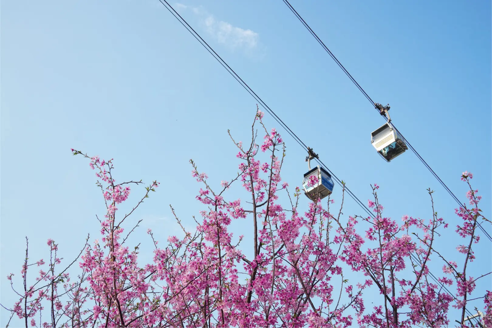 要數近年最受矚目的賞櫻地,非由機場管理局打造的東涌櫻花園莫屬!今年園區擴展至第三期,總面積達3萬平方呎,由路邊延伸至海濱一帶,共種植了約160棵「廣州櫻」,色澤紅潤。最特別是,這裡能一次過捕捉粉紅花海、湛藍海景與昂坪360纜車同時入鏡的獨特畫面。據了解,第二批櫻花樹預計於3月中至尾開花,花期較長,市民可安排於2月中旬,或3月中旬前往。