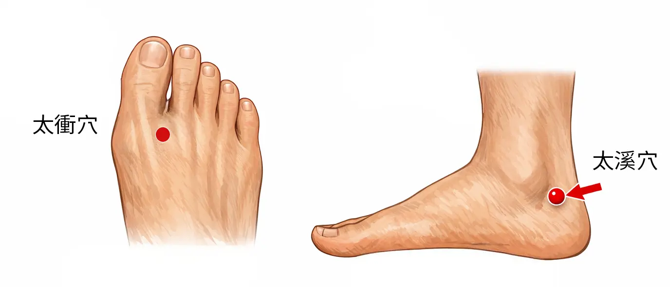 - 5. 太溪穴(足內踝尖與跟腱間凹陷處):益腎納氣,每天按壓1分鐘,每日2-3次。