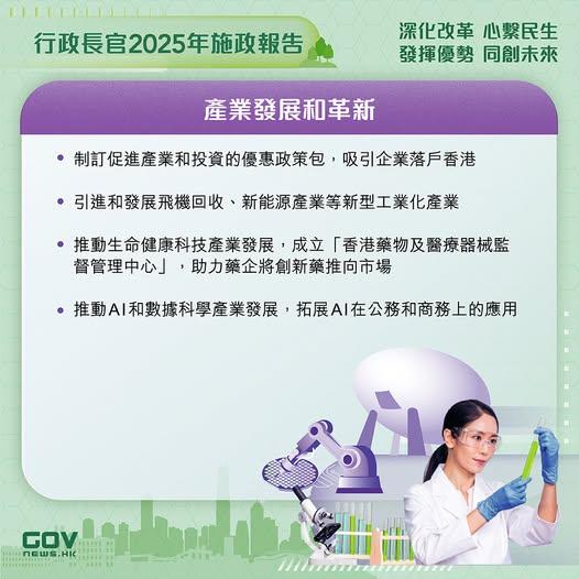 施政報告亦提出推動人工智能作為核心產業,成立AI效能提升組協助部門提升運作效率。政府亦將實施部門首長責任制,明確問責機制。