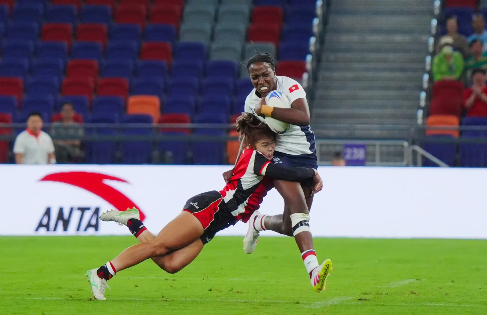 女子七人制欖球賽小組循環賽 香港對山東(圖片來源﹕新華社)