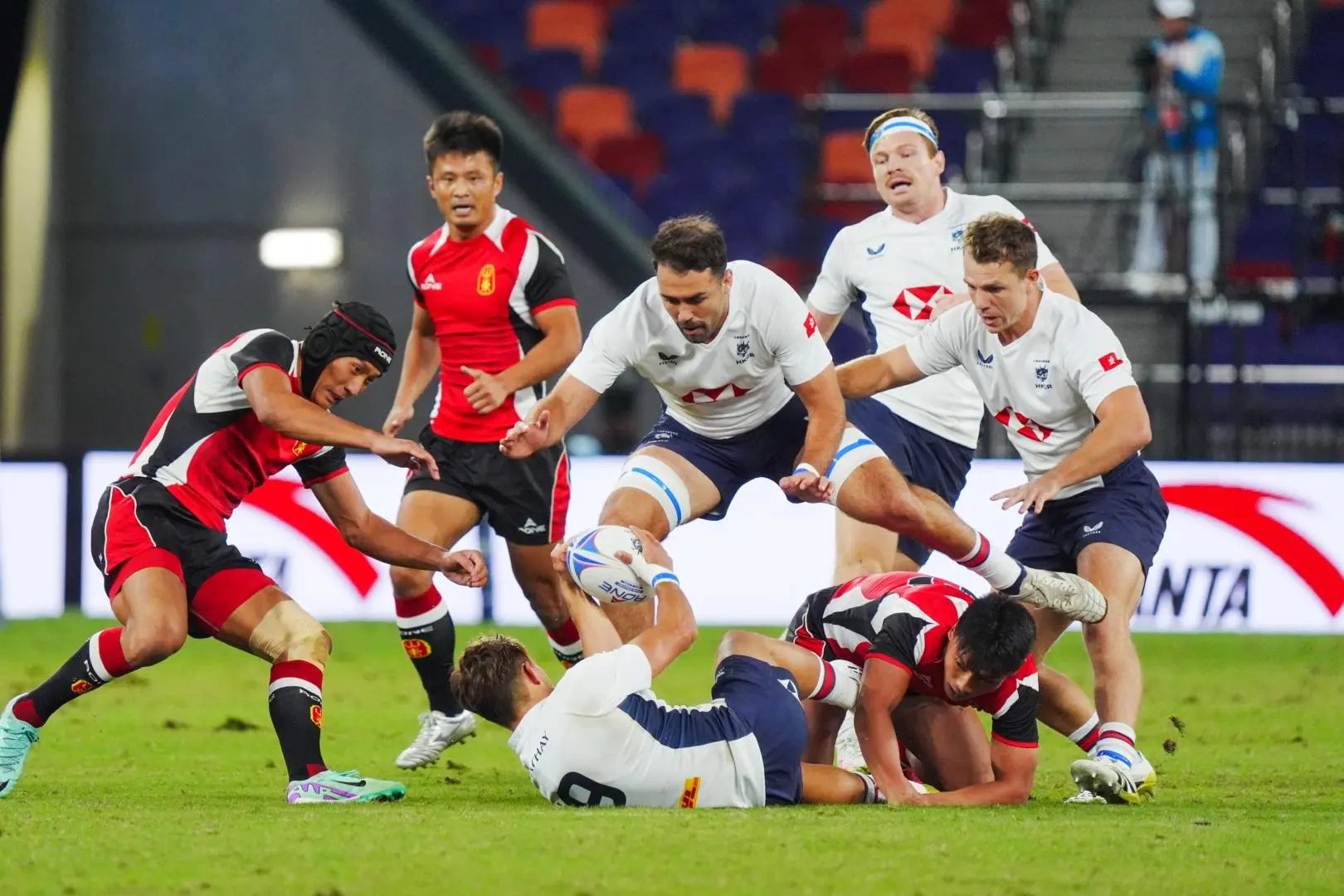 賽事在啟德主場館舉行,港隊於開賽不久就取得優勢,憑房傑鋒率先達陣領先5:0,港隊之後再藉山東犯錯,由靴貝特達陣,並由拜恩菲立斯射入附加罰球,拉開領先比數至12:0。山東之後有劉魯達達陣,協助山東稍為追近,半場港隊領先12:7。