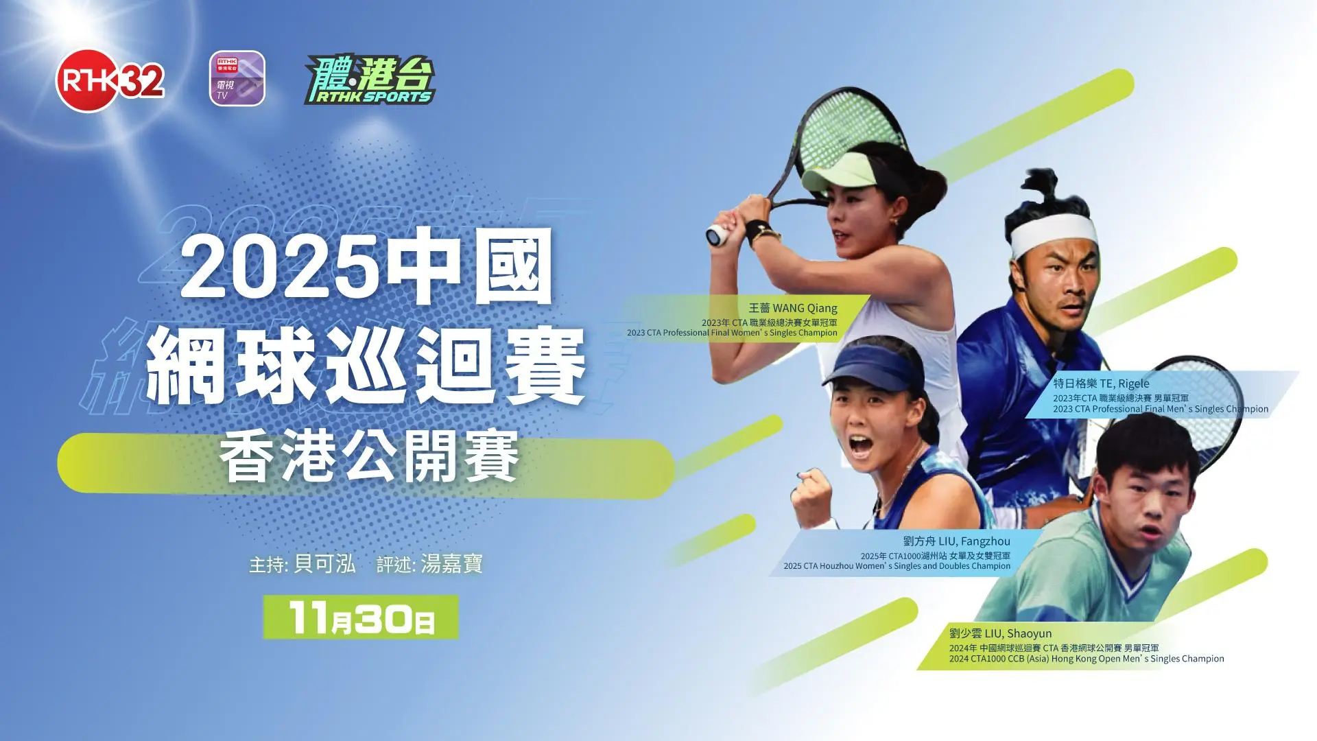 2025中國網球巡迴賽香港公開賽 (CTA1000香港公開賽) 於 11月23日至30日,一連八日假香港維多利亞公園網球場舉行。賽事有超過 15…
